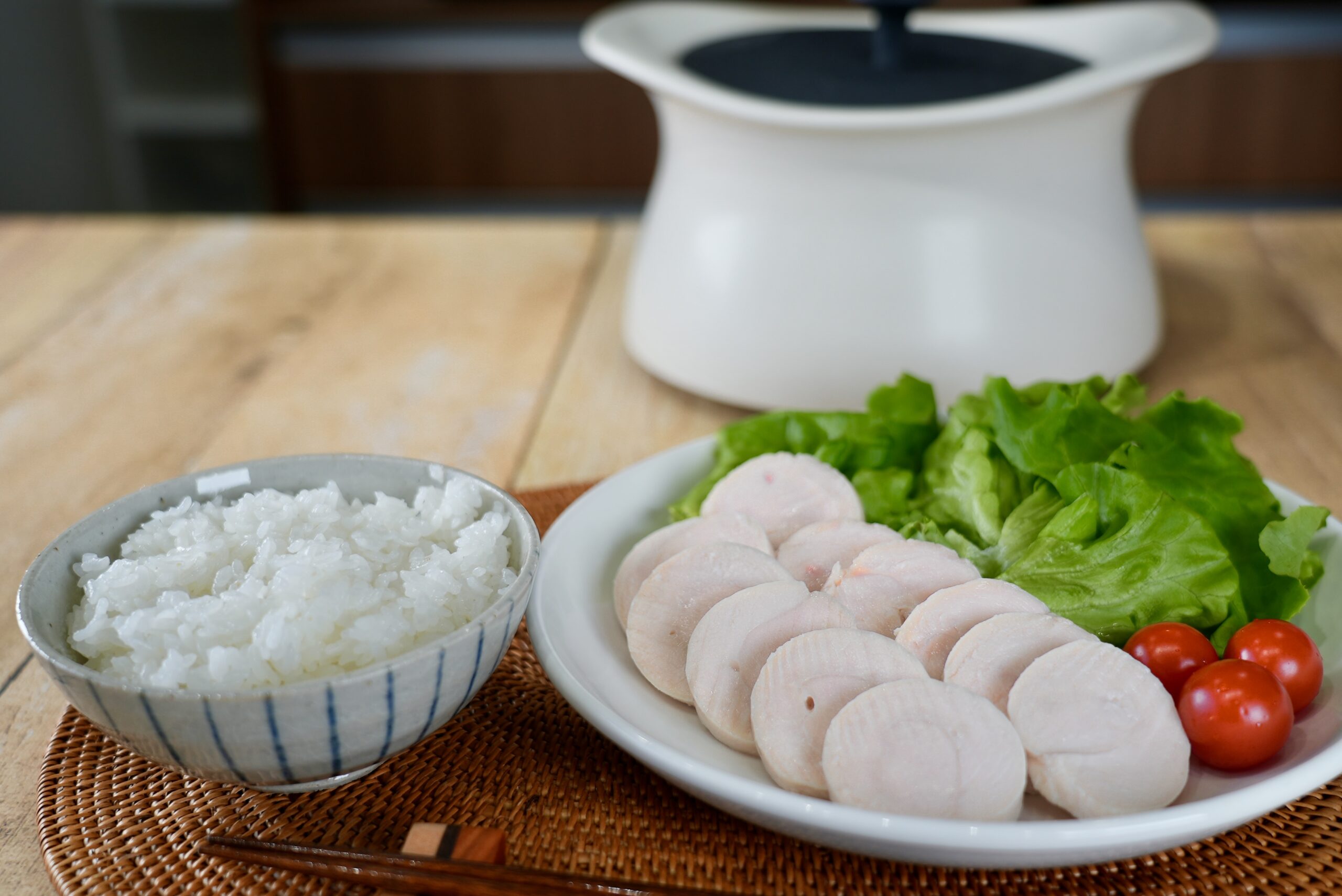 - ⑧鍋の周りからぷくぷくと泡が出てきたらIHのスイッチを止めて15分蒸らし、全体をほぐしてお茶碗に盛り付けたら完成です。