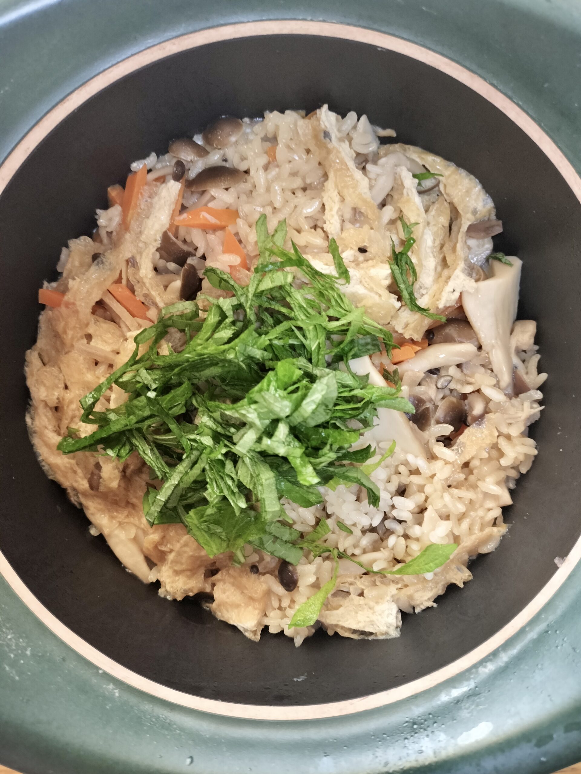- ④人参、生姜は千切り、油揚げは熱湯をかけて油抜きし、食べやすい大きさに切ります。