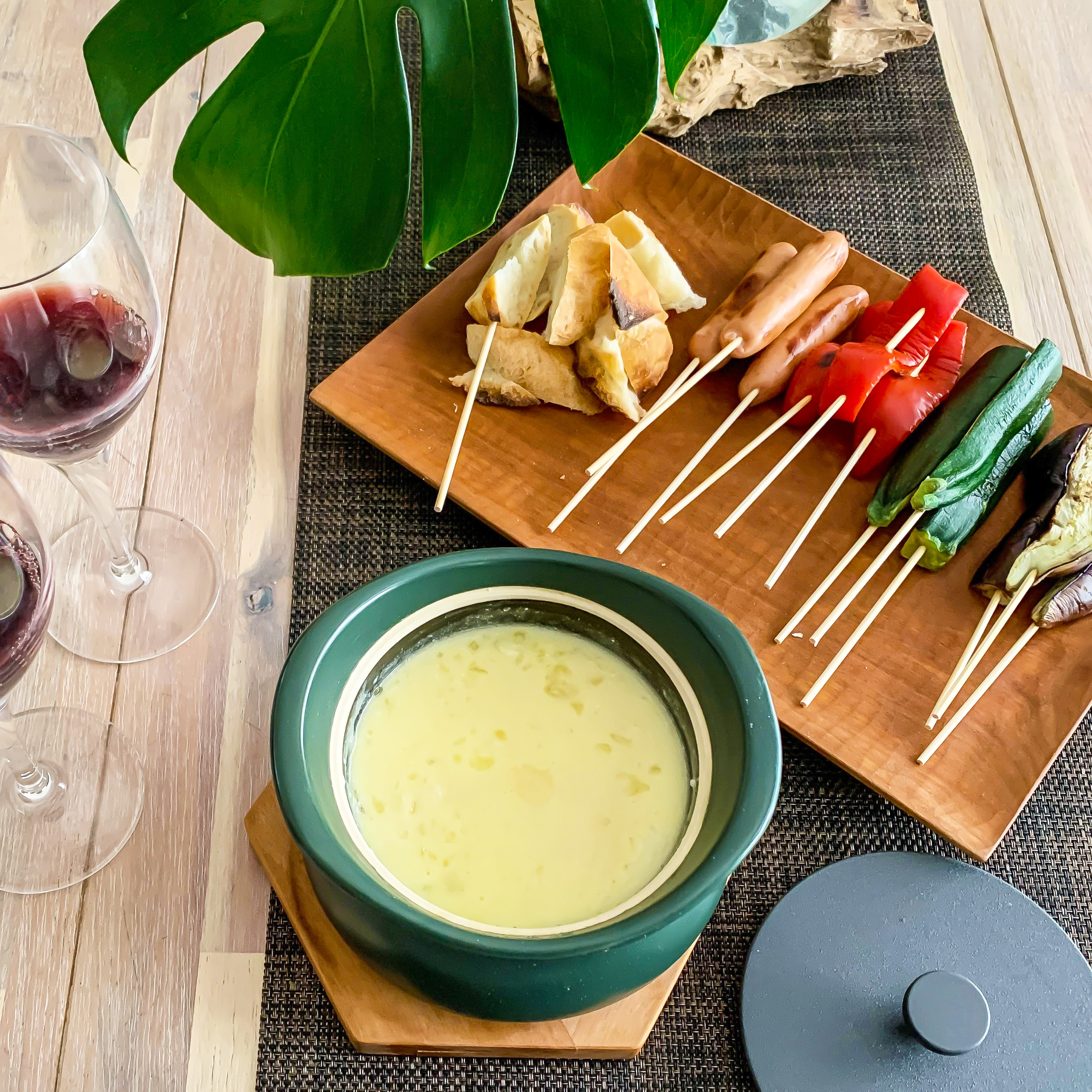 - ③味見をして、必要に応じて塩胡椒で調え、グリル野菜やソーセージ、エビ、パンなどを絡めていただく。