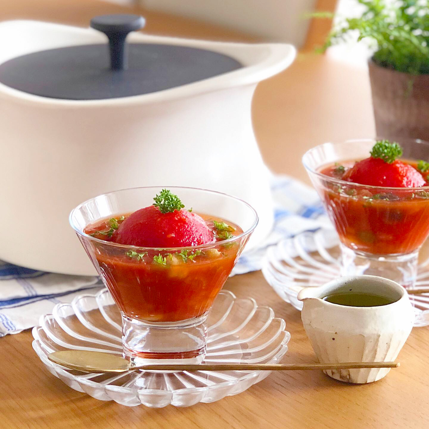 ・スープ用の中サイズのトマト5個を湯剥きし、