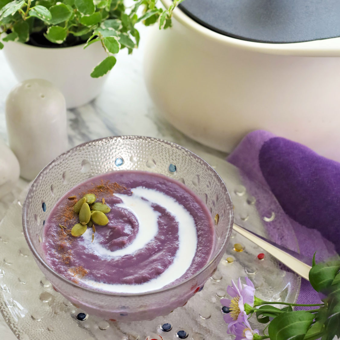 - ④塩・胡椒で味を調え冷蔵庫で冷やし、器に盛りつけクミンやナツメグ、ナッツ類で飾って完成!