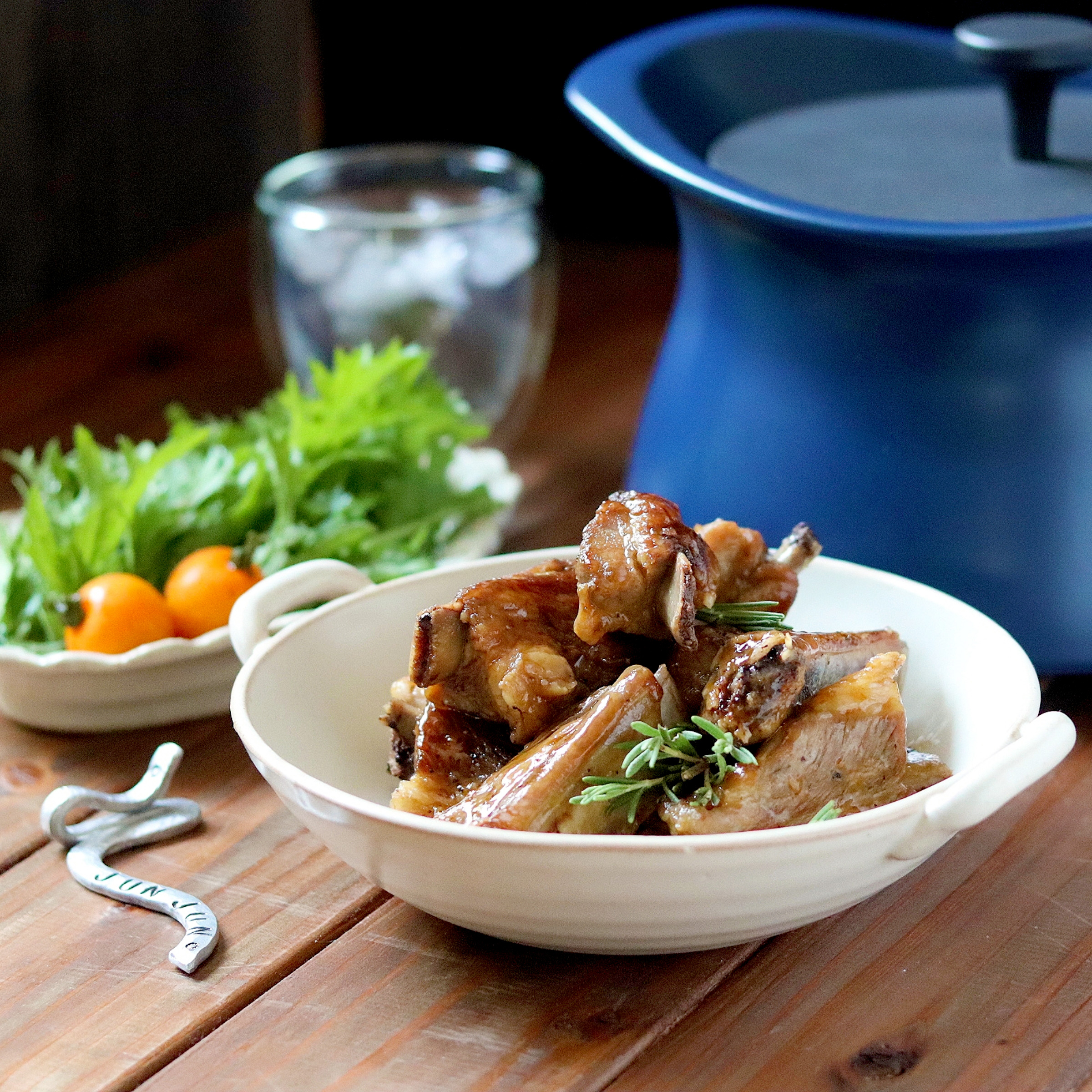 - ③ベストポットに紅茶と焼き目をつけたスペアリブ、※の調味料をすべて入れ、強火にかけ蓋をする。