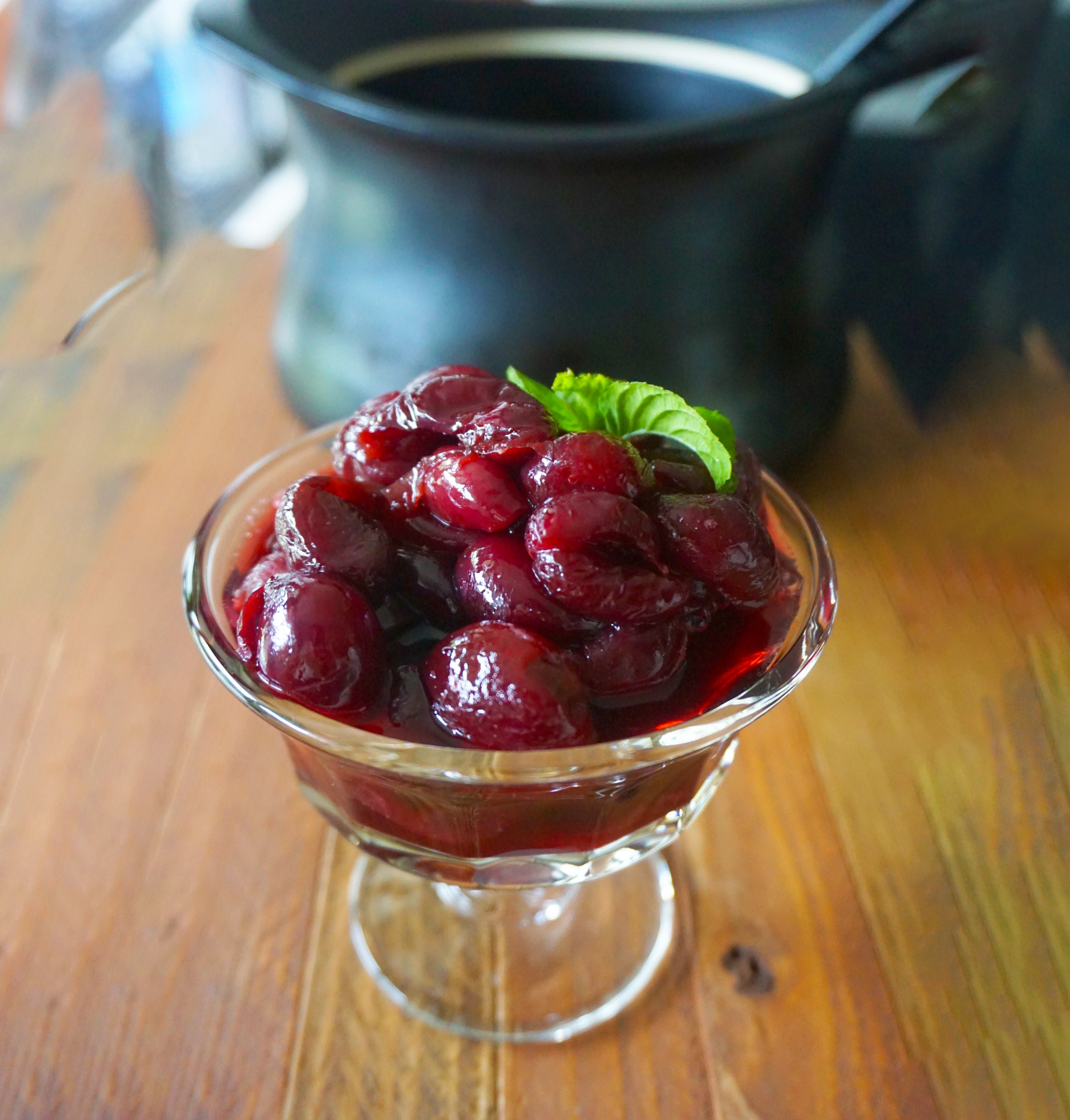 - ②ベストポットに冷蔵庫で寝かせたチェリーを入れ、レモン汁を入れ蓋をして中火にかける。