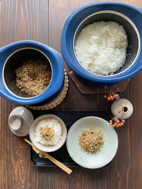 - ②調味料が煮立ってきたら、ちりめんじゃこを投入して弱火にする。