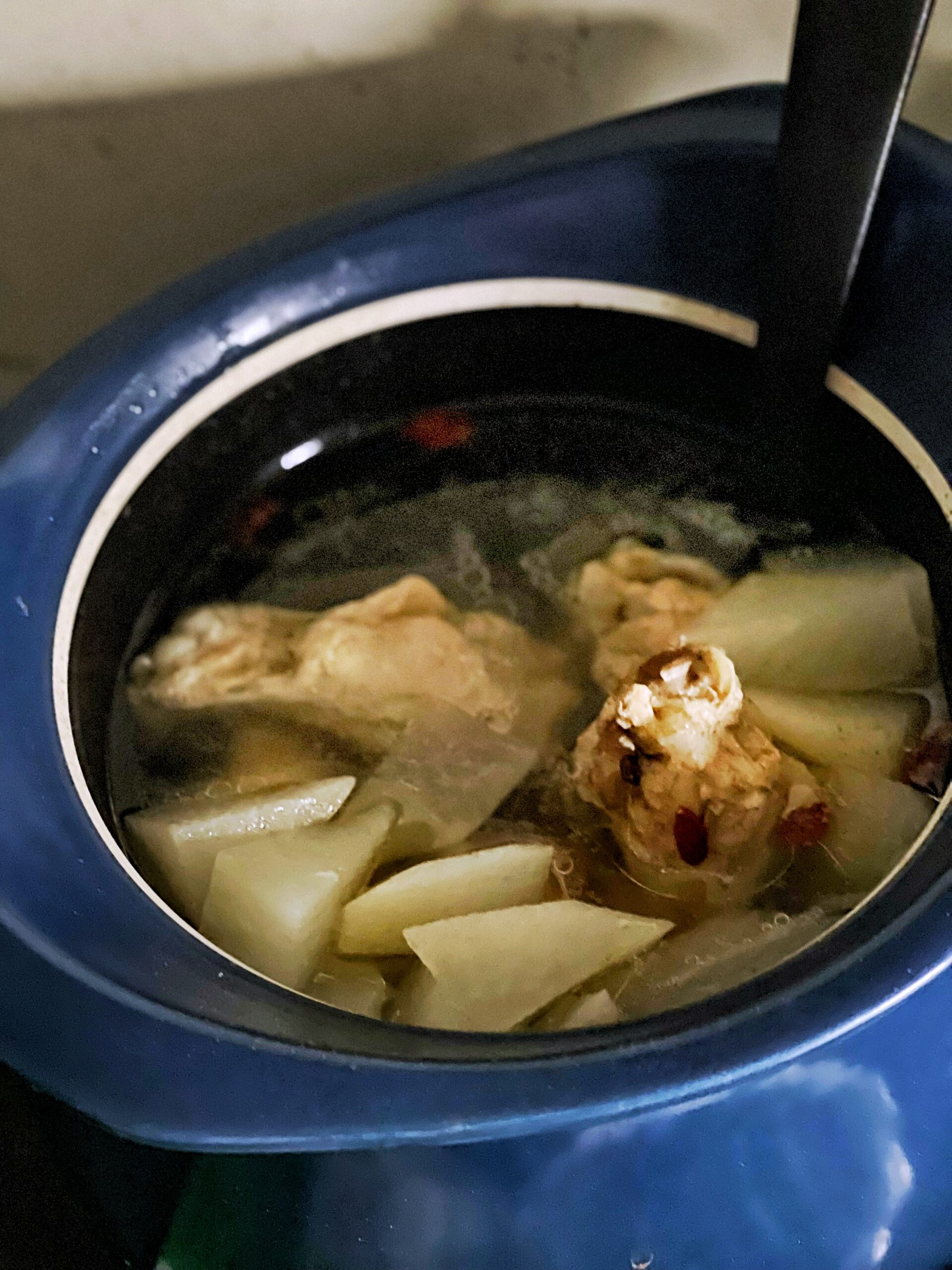 - ②沸騰したらアクを取り蓋をして弱火で10分煮た後、火を止めて30分放置すれば完成。