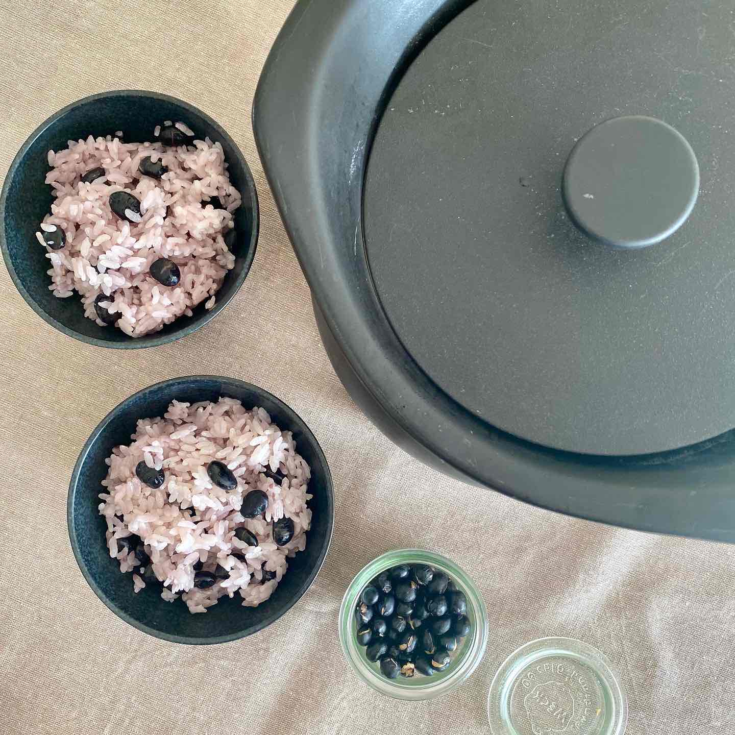 - ①黒豆は水でざっと洗ってからフライパンで黒豆の皮が破けるまで15分程乾煎りする。