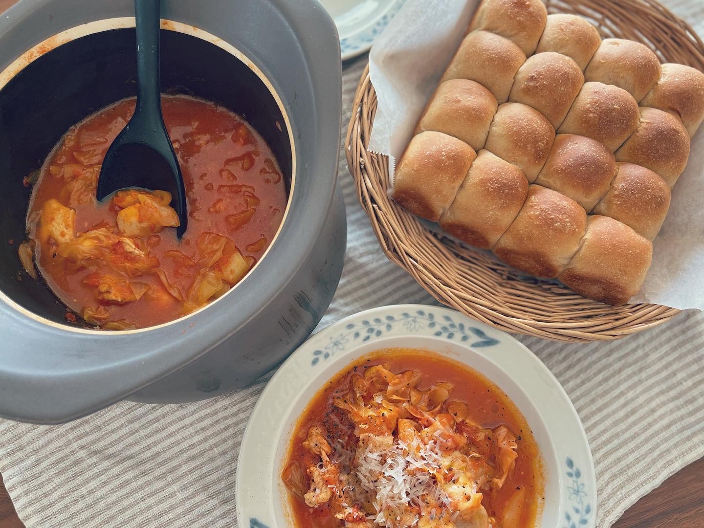 - ⑧お皿にうつし仕上げをまぶして完成。ズボラさんは1.2を省いて入れてもOK!!お好みのハーブと一緒に煮込んだり、色んなキノコを入れても美味しいです。