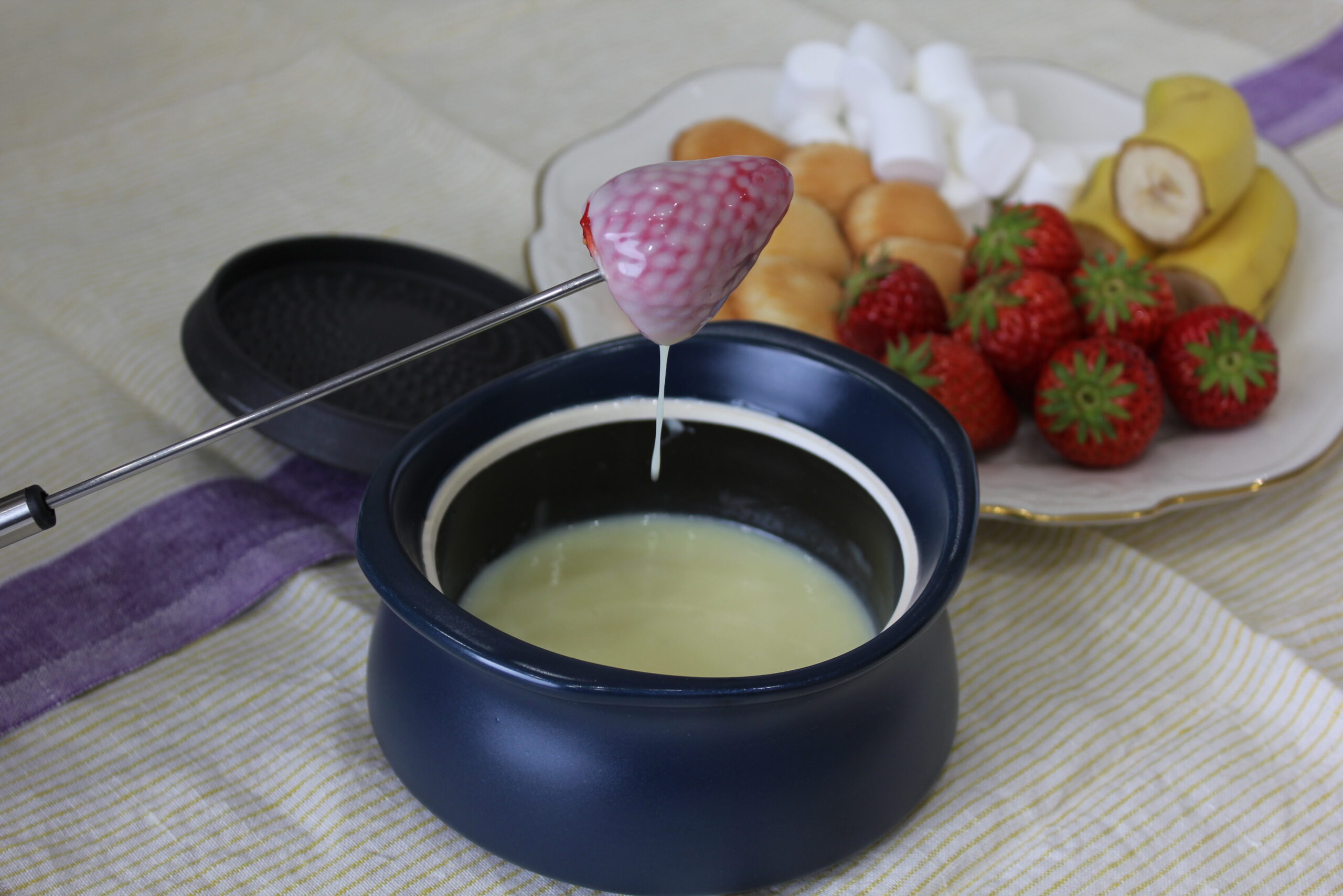 - ①小さくしたチョコと牛乳の半量をベストポットに入れます。