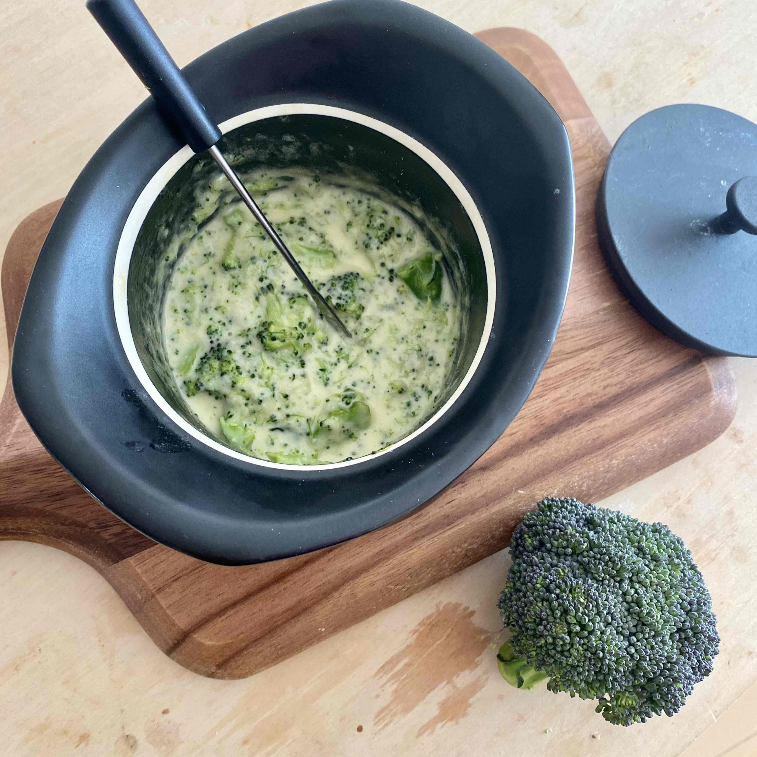 - ③ベストポットに牛乳、②のブロッコリー、ニンニクのすりおろしを入れて蓋をして中火にかけます。沸騰してきたら一度混ぜます。
