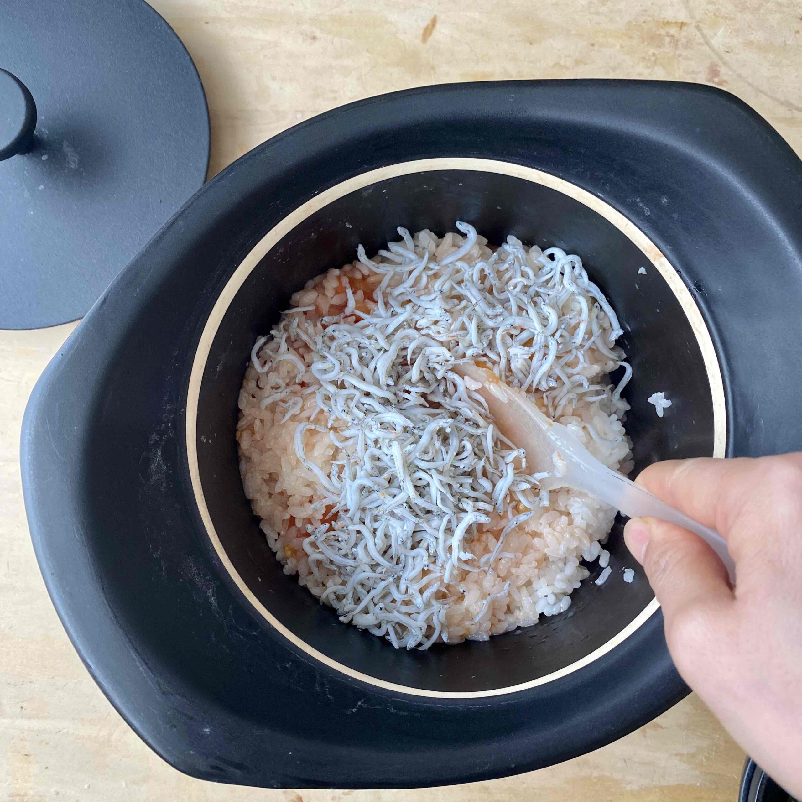 - ③しらすを加え、トマトを崩しながら切りまぜる。